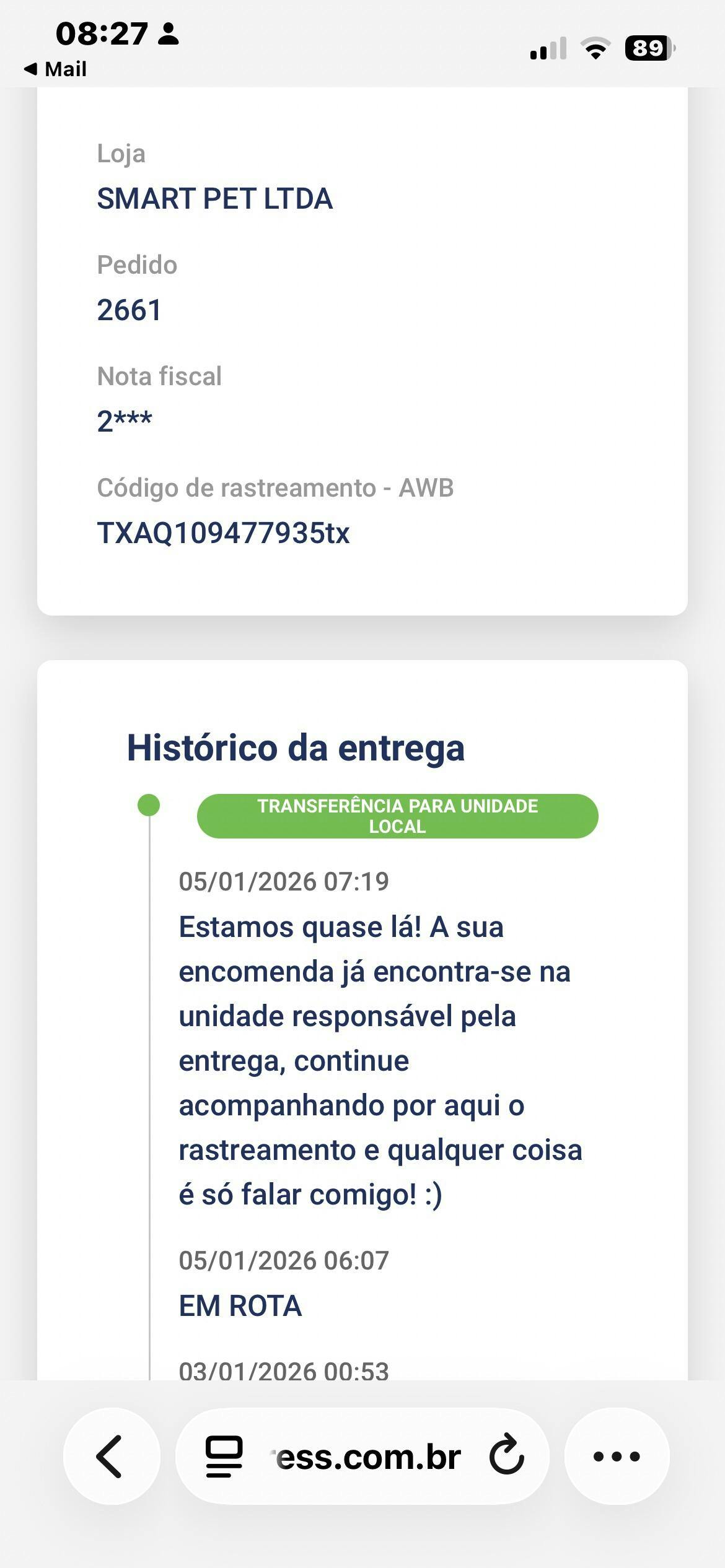 Comprei 2 pacotes de areia no dia 26 dezembro e até agora não recebi